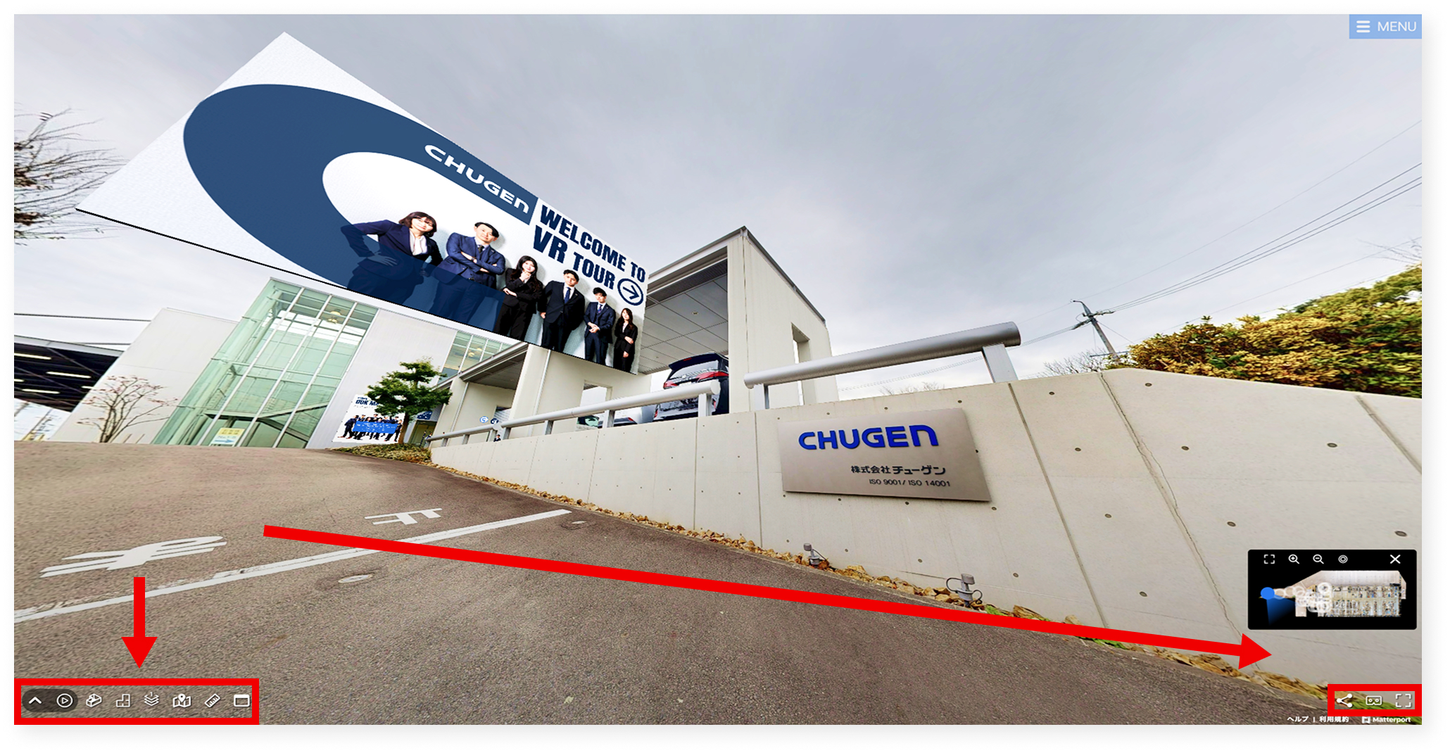 再生ボタンをクリックすると、エントリーポップが開き、さらにクリックするとウォークスルーエリアでの画面操作が可能となります。