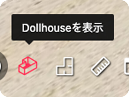 ドールハウスビューは、建物全体をドールハウスのように立体的に表示することが可能な機能です。ドールハウスビューでは建物の全体像を一目で把握することができ、空間や構造を俯瞰的に確認することができます。また、空間内を自由自在に操作可能で、まるで現地に入り込んだかのようなバーチャル空間を体験できます。